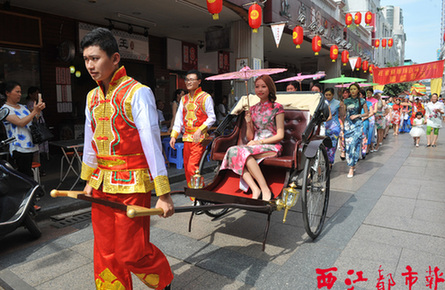時(shí)間:6月8日至11日在騎樓城打造騎樓嶺南風(fēng)情街,配上具有本地特色的民間習(xí)俗巡演,增強(qiáng)游客的參與感與情景感,彰顯梧州原汁原味的嶺南文化,活動(dòng)將設(shè)置固定表演舞臺(tái)每天固定時(shí)間演出嶺南特色節(jié)目,同時(shí)在騎樓城主街道穿梭嶺南特色民俗巡演。[更多]